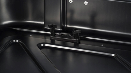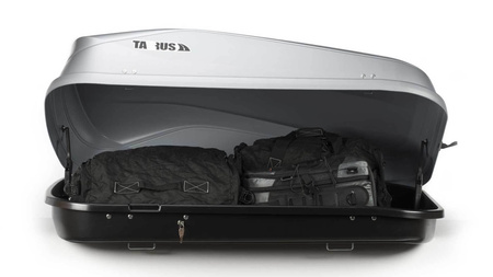 Boxy dachowe Taurus Easy 420 zostały wyposażone w dwupunktowy zamek oraz zatrzask bezpieczeństwa z przodu, który dodatkowo zabezpiecza przed otwarciem wieka w czasie szybkiej jazdy. Wieko boxa, dla wygody użytkownika, w momencie otwierania jest podtrzymywane solidnym mechanizmem sprężynowym, a sam box wyposażony został w specjalne pasy wewnętrzne do zamocowania przewożonego bagażu.