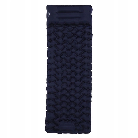 - Lekki materacyk turystyczny z wbudowaną pompką nożną, idealny dla miłośników biwakowania;