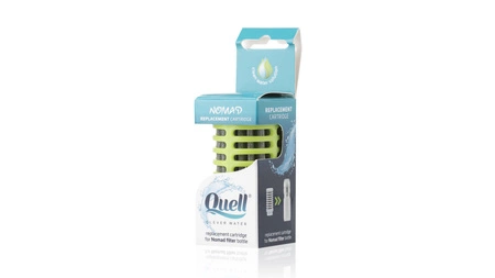 Filtr można łatwo i szybko wymienić. Jest dostępny w różnych kolorach. Wydajność filtra: 300 napełnień, w zależności od czystości wody wlewanej do bidonu Quell Nomad.